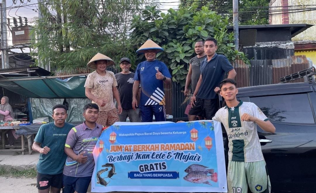 Hitamputihpena.com|Sorong, – Wujud ketahanan pangan mandiri, Wakil Kepala Kepolisian Daerah (Wakapolda) Papua Barat Daya, Kombes Pol. Semmy Ronny Thabaa, S.E., menunjukkan aksi humanis yang unik dalam menyapa masyarakat di bulan suci Ramadan. Berbeda dari biasanya, perwira menengah Polri ini turun langsung membagikan ikan lele dan mujair segar hasil budidaya pribadinya kepada warga sebagai menu berbuka puasa. Sabtu, (7/3/2026).