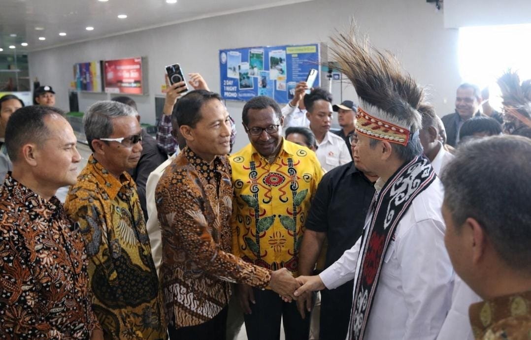 Hitamputihpena.com | Sorong, – Kapolda Papua Barat Daya, Brigjen Pol. Gatot Haribowo, S.I.K., M.A.P., bersama jajaran Forum Koordinasi Pimpinan Daerah (Forkopimda) menyambut kedatangan Ketua Dewan Pembina PP Gekira, Hashim Djojohadikusumo, di Bandara Domine Eduard Osok, Papua Barat Daya, pada Jumat (16/1/2026).