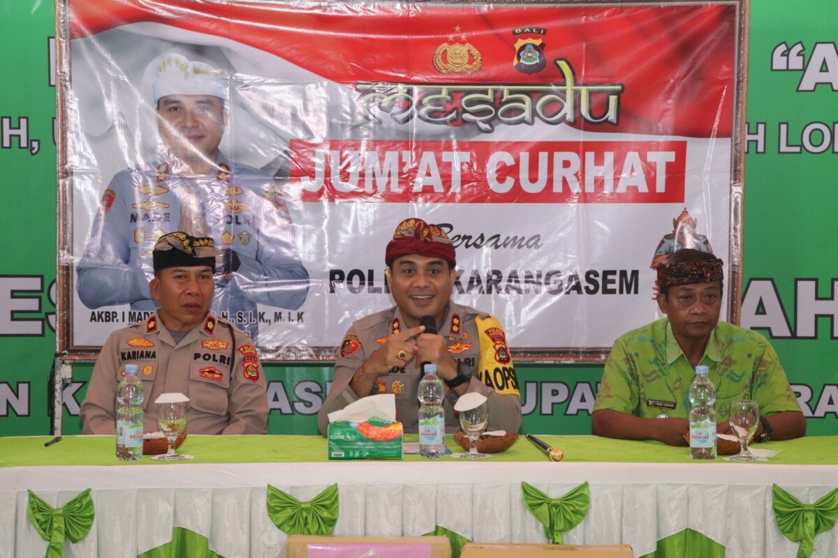 Hitamputihpena.com|KARANGASEM – Dalam upaya menyerap aspirasi masyarakat secara langsung, Polres Karangasem menggelar kegiatan Jumat Curhat bertempat di Kantor Desa Tegallinggah, Kecamatan Karangasem, pada Jumat (6/3/2026) pagi.