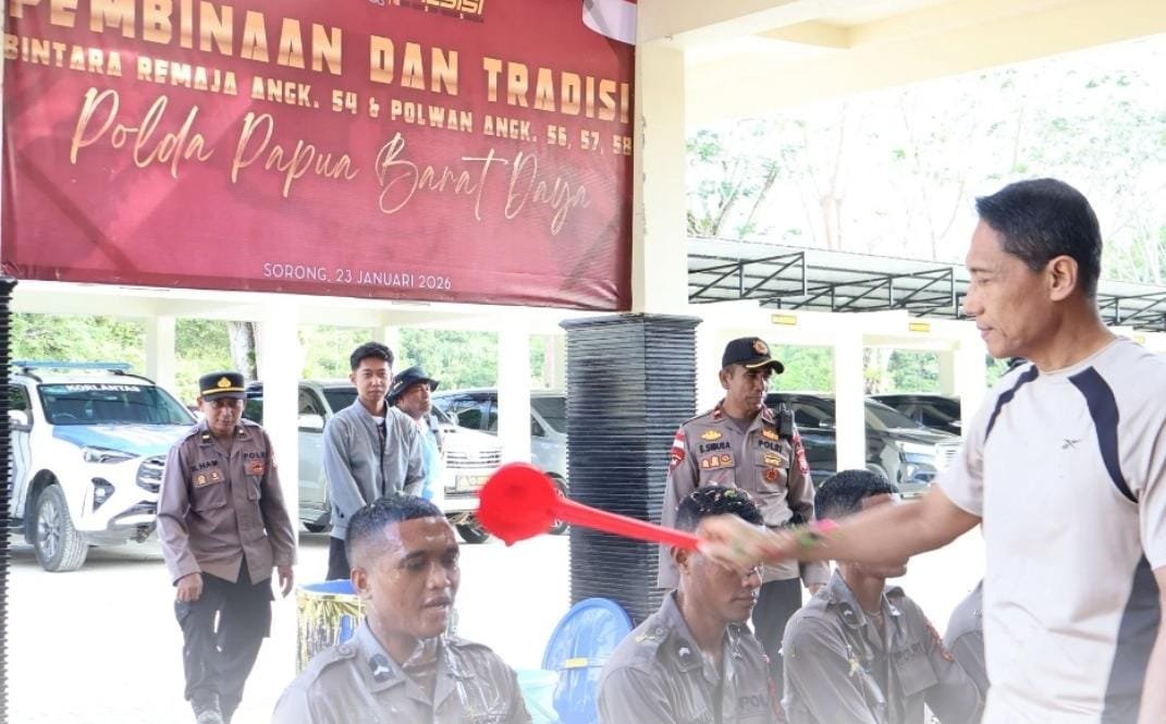Hitamputihpena.com | Sorong, – Kepolisian Daerah (Polda) Papua Barat Daya menggelar kegiatan Pembinaan dan Tradisi bagi Bintara Remaja Angkatan 54 serta Polwan Angkatan 56, 57, dan 58 pada Jumat (23/1/2026). Kegiatan ini bertujuan untuk membentuk karakter dan menanamkan nilai-nilai dasar Kepolisian Negara Republik Indonesia bagi para personel muda.