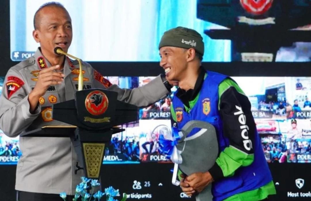 Sebagai bentuk apresiasi dan amanah, kegiatan ini diwarnai dengan penyerahan bantuan sembako secara simbolis. Selain itu, dilakukan penyematan pin keselamatan berlalu lintas serta pemberian helm dan atribut Ojol Kamtibmas.
