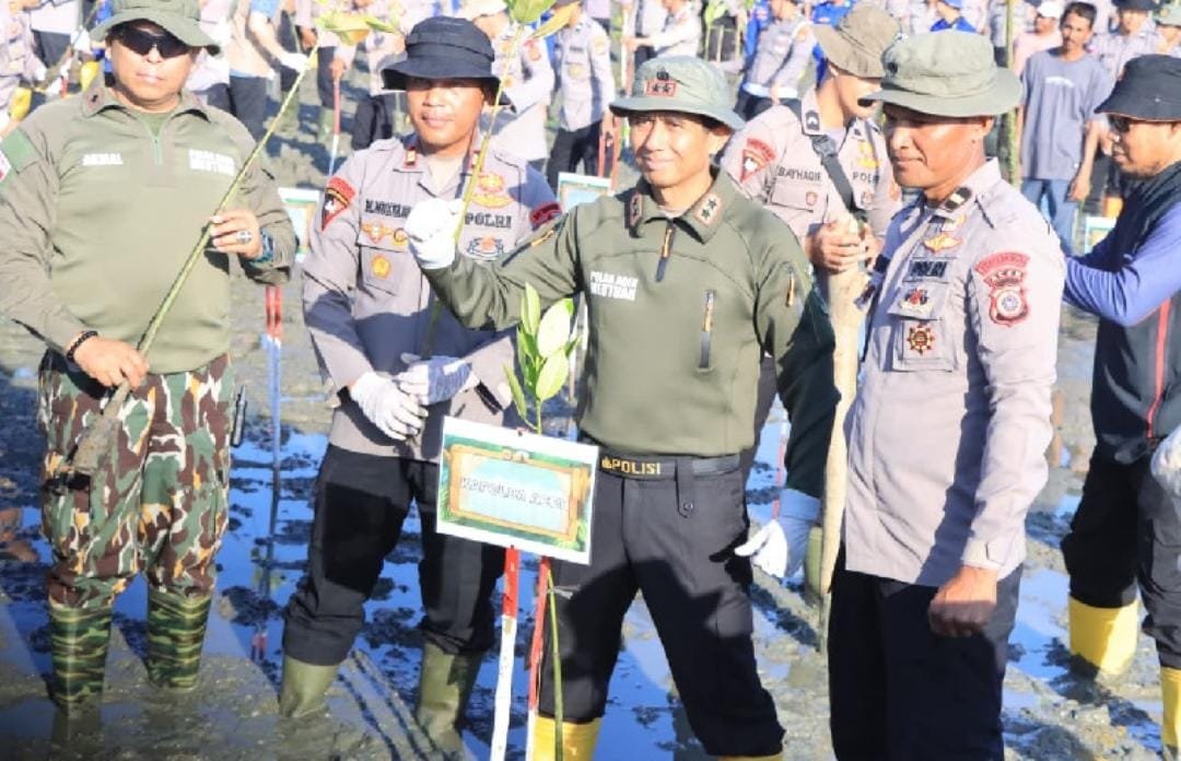 Hitamputihpena.com | Banda Aceh — Polda Aceh melaksanakan kegiatan penghijauan dengan menanam 10.000 bibit pohon mangrove di Desa Alue Naga, Kecamatan Syiah Kuala, Kota Banda Aceh, Jumat, 30 Januari 2026. Kegiatan ini merupakan bagian dari program Green Policing sebagai bentuk kepedulian Polri terhadap pelestarian ekosistem pesisir.