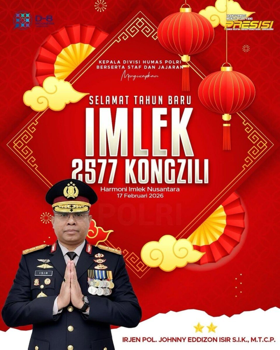 Hitamputihpena.com | Jakarta, – Kepala Divisi Humas Polri, Irjen Pol. Johnny Eddizon Isir, S.I.K., M.T.C.P., menyampaikan ucapan selamat merayakan Tahun Baru Imlek 2577 Kongzili kepada seluruh masyarakat yang merayakannya pada Selasa, 17 Februari 2026.